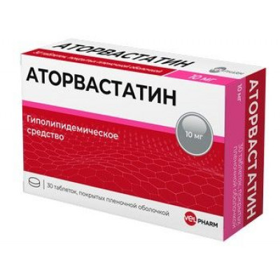 АТОРВАСТАТИН 10МГ. №30 ТАБ. П/П/О /ВЕЛФАРМ/