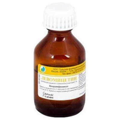 Действующее вещество: Хлорамфеникол (левомицетин) – 1 г; Вспомогательные вещества: Этанол (этиловый спирт) 70% до 100 мл