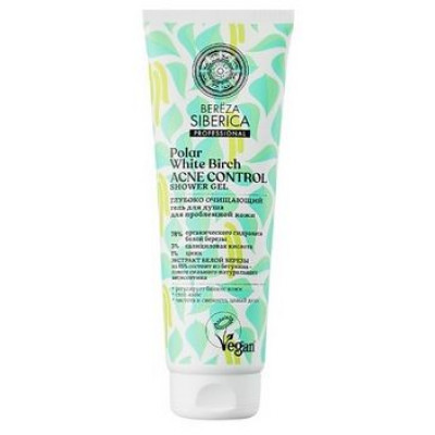 Гель для душа "Глубоко очищающий" – настоящее спасение для проблемной кожи, часто склонной к появлению акне на теле. День за днем устраняет акне и препятствует их дальнейшему появлению, регулирует выработку себума, дарит долгожданное чувство чистоты и свежести на целый день. Белая полярная береза содержит в несколько раз больше бетулина, чем береза, растущая в средних широтах. А высокие концентрации витаминов B2 и B5 оказывают сильное успокаивающее действие, препятствуют потере влаги, осветляют несовершенства и выравнивают тон кожи. БЕТУЛИН известен своим мощным противовоспалительным действием, он эффективно успокаивает раздражения, сужает расширенные поры, препятствует возникновению акне и усиливает иммунные свойства кожи, одновременно увлажняя и поддерживая здоровый баланс. Салициловая кислота – эффективно успокаивает, ускоряет процессы заживления и регенерации, восстанавливает здоровый баланс липидов кожи. Цинк – эффективно борется с акне, подсушивая воспалительные элементы, предотвращает образование черных точек.