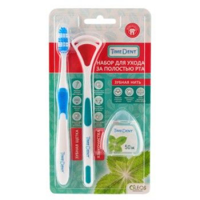 ОЛЕОС ТАЙМДЕНТ НАБОР (ЗУБ.НИТЬ 50М.+ЗУБ.ЩЕТКА+ЯЗЫКОЧИСТКА) [TIMEDENT]