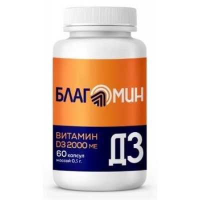 БЛАГОМИН D3 2 000 МЕ – дополнительный источник витамина Д3. В капсуле БЛАГОМИН Витамин Д3 содержится 2 000 МЕ, что составляет 1 000% от рекомендуемого уровня суточного потребления (не превышает верхний допустимый уровень потребления). Благомин Д3 способствует восполнению дефицита витамина D в организме, лучшему усвоению кальция, укреплению костей и зубок, снижению риска развития простудных заболеваний, поддержанию сердечно-сосудистой, нервной систем и репродуктивной функции организма. Разрешен к применению с 14 лет.