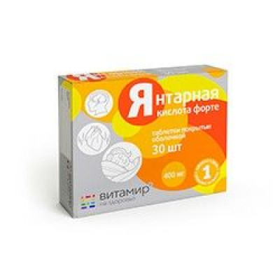 ВИТАМИР ЯНТАРНАЯ КИСЛОТА ФОРТЕ 620МГ. №30 ТАБ. /КВАДРАТ-С/